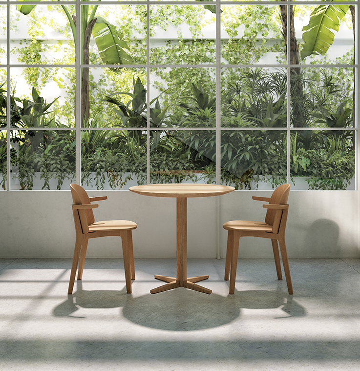 De loin, elle ressemble à un drôle d’animal à 3 ou 4 pattes. De plus près elle révèle un travail de précision sur du bois massif au service de formes monolithiques séparées par des espaces inspirés par la brèche de Roland dans les hautes Pyrénées marquant la frontière entre la France et l’Espagne.