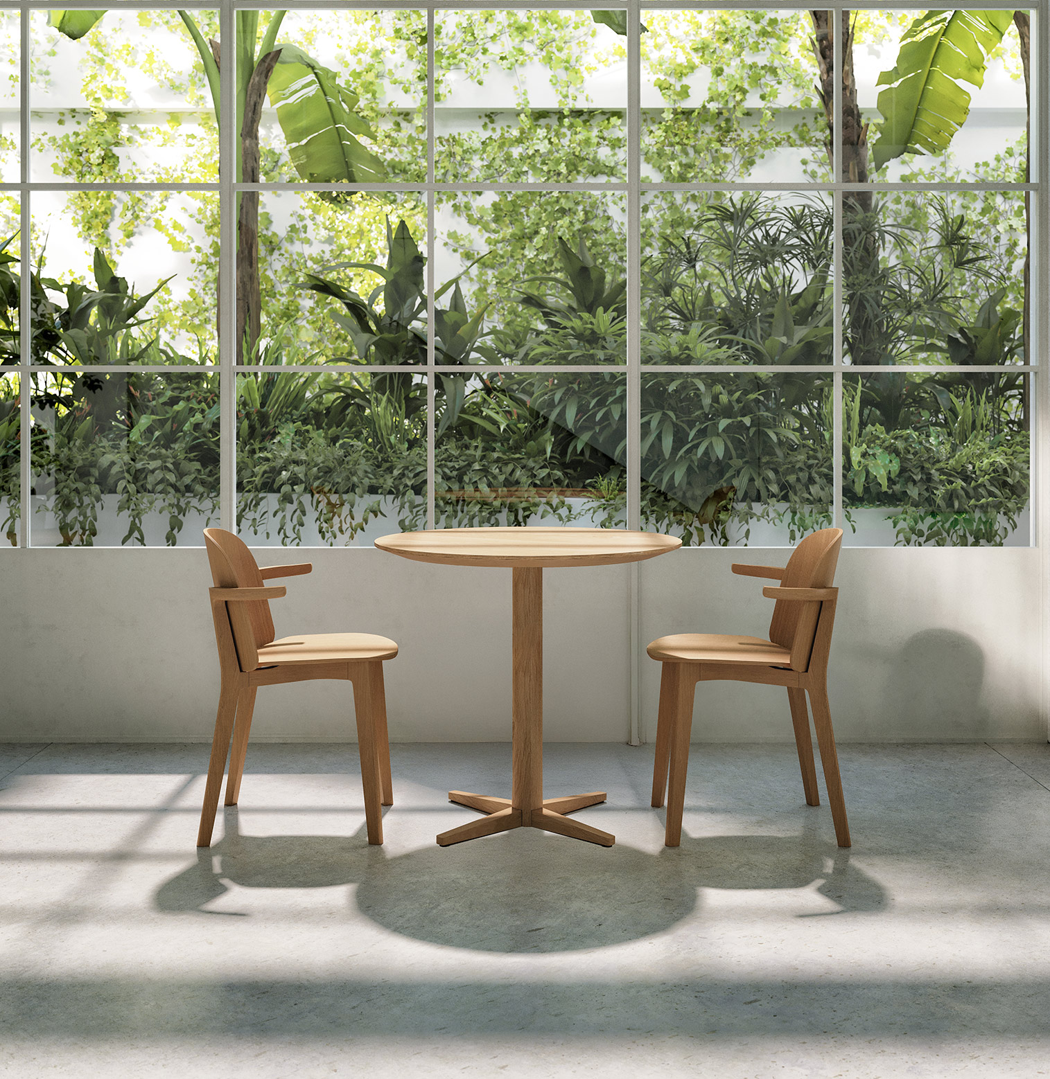 De loin, elle ressemble à un drôle d’animal à 3 ou 4 pattes. De plus près elle révèle un travail de précision sur du bois massif au service de formes monolithiques séparées par des espaces inspirés par la brèche de Roland dans les hautes Pyrénées marquant la frontière entre la France et l’Espagne.